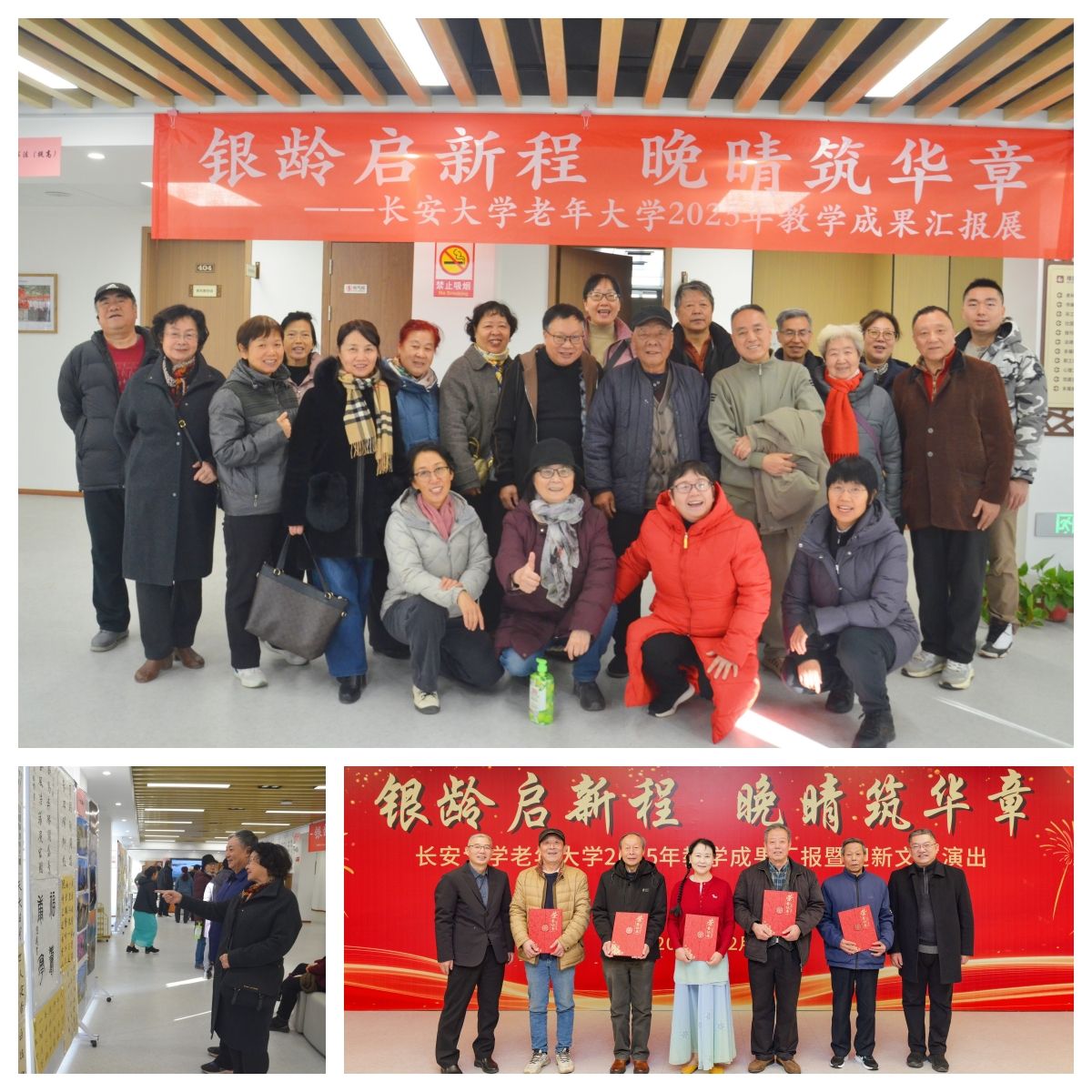 银龄启新程,晚晴筑华章。12月26日,我校老年大学2025年教学成果汇报展暨迎新文艺演出在南校区师生活动中心举办,展示分为教学汇报演出和光影墨韵文化展两部分,离退休工作处班子成员、老年大学师生和老同志代表近300人欢聚一堂,见证学员学习成果、喜迎马年到来。