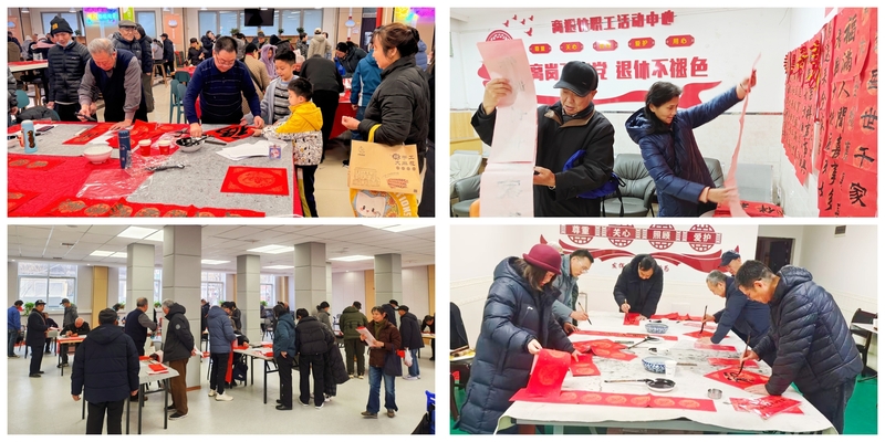 2月5日,南校区各住宅区写春联活动开展,活动采用提前书写、现场书写两种形式,活动现场红纸铺展、翰墨飘香,前来领取春联的教职工、离退休老同志和社区居民络绎不绝,追梦书画协会几十位书法爱好者根据大家的个性化需求各展所长,现场构思、笔走龙蛇,一张张饱含着对美好生活的期盼的春联和“福”字跃然成形,年味和祝福在墨香中交织,气氛热烈而温馨。